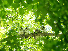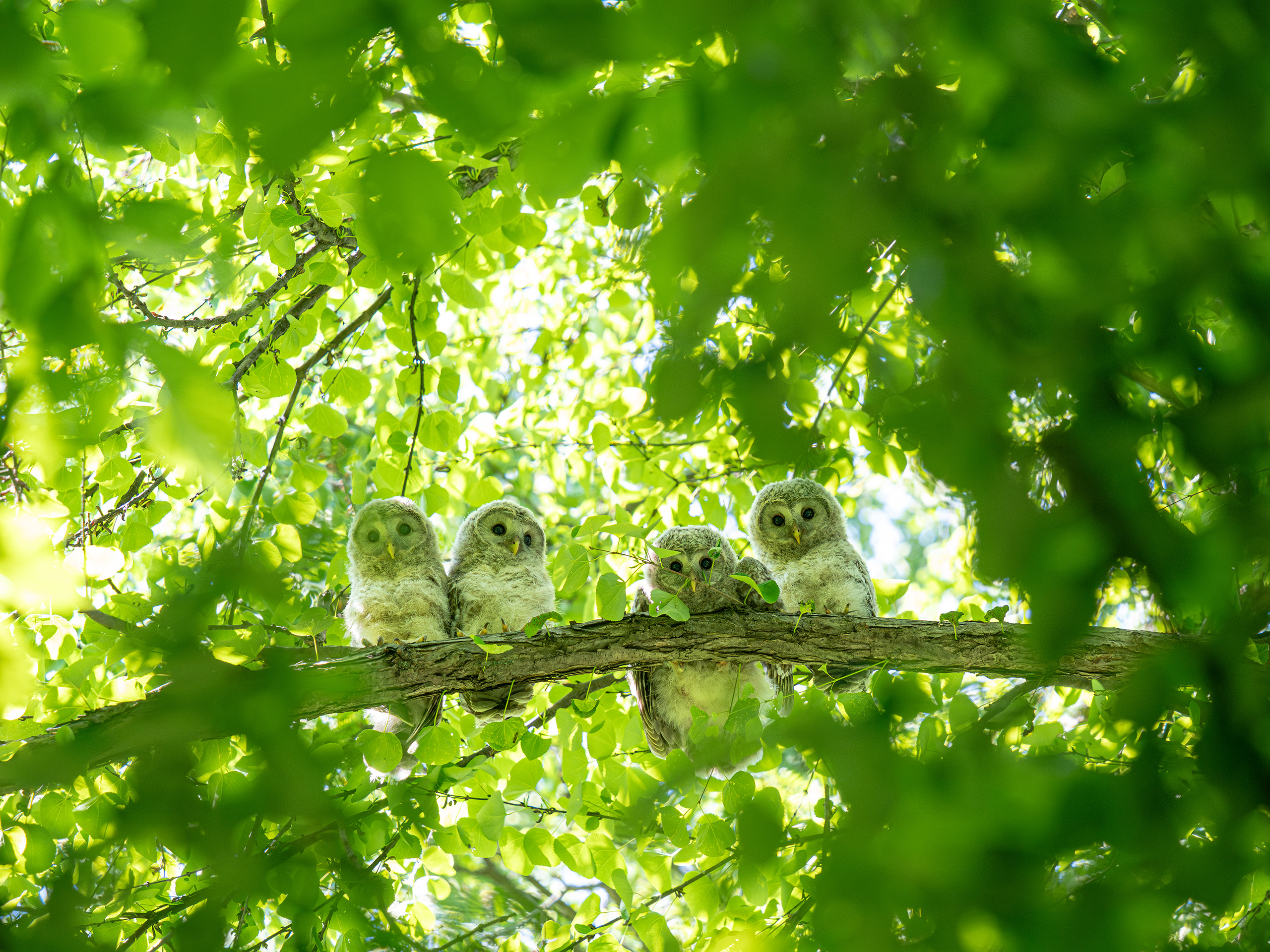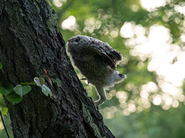 巣立ちしたばかりのエゾフクロウの雛がカラスに襲撃され地面に落ちてしまった。まだ警戒心が無く純粋な眼差しだ。その姿は、森の妖精そのものだ。夕暮れ時であたりは暗くなっていたが強力な手ぶれ補正+明るいレンズのおかげでISO感度を上げすぎてノイズが出るのを抑えることができる。数枚撮影し親が警戒しない距離まで離れると、親に呼ばれ近くの木の上に自ら登っていった。周囲の状況を細かく把握し、野鳥たちに寄り添った撮影を心掛けている。