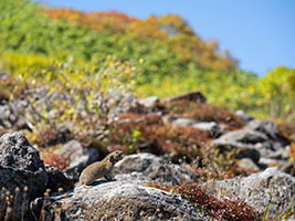 北海道大雪山の高山地帯には岩が積み重なったガレ場がある。