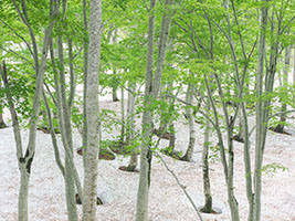 残雪と新緑のブナ林。季節の移ろいを感じる、素晴らしい自然の風景をハイレゾショットで高精細に写す。