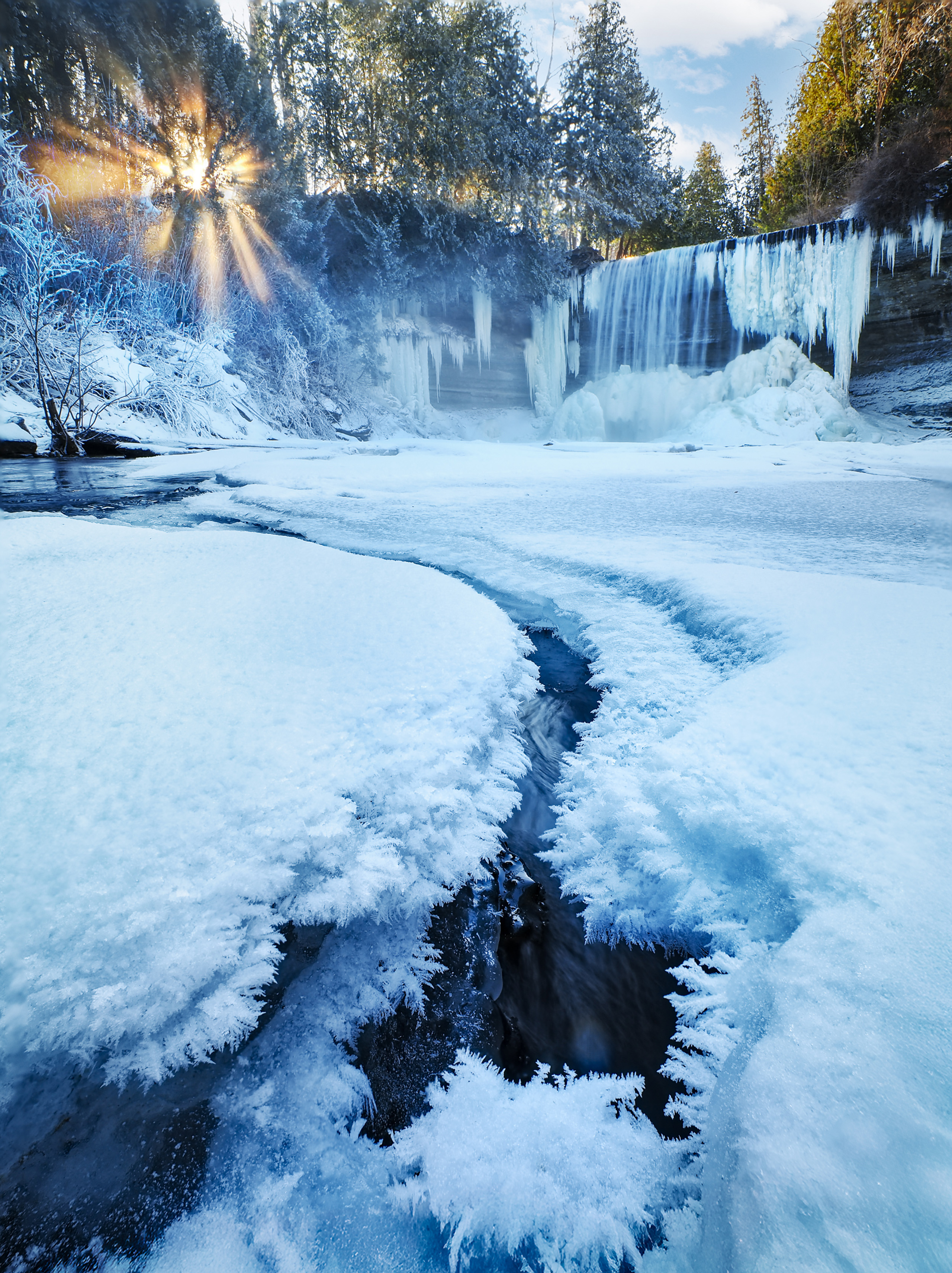 ブライダルベール滝は、マニトゥーリン島にある風光明媚な場所で、私の家から比較的近くにあります。シャッタースピードを落として水をぼかすため、ISO感度は最も低くしました。さらに内蔵の被写界深度合成機能を使用し、被写界深度を最大に設定しました。