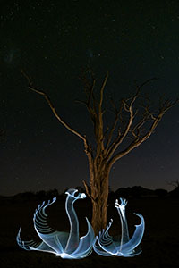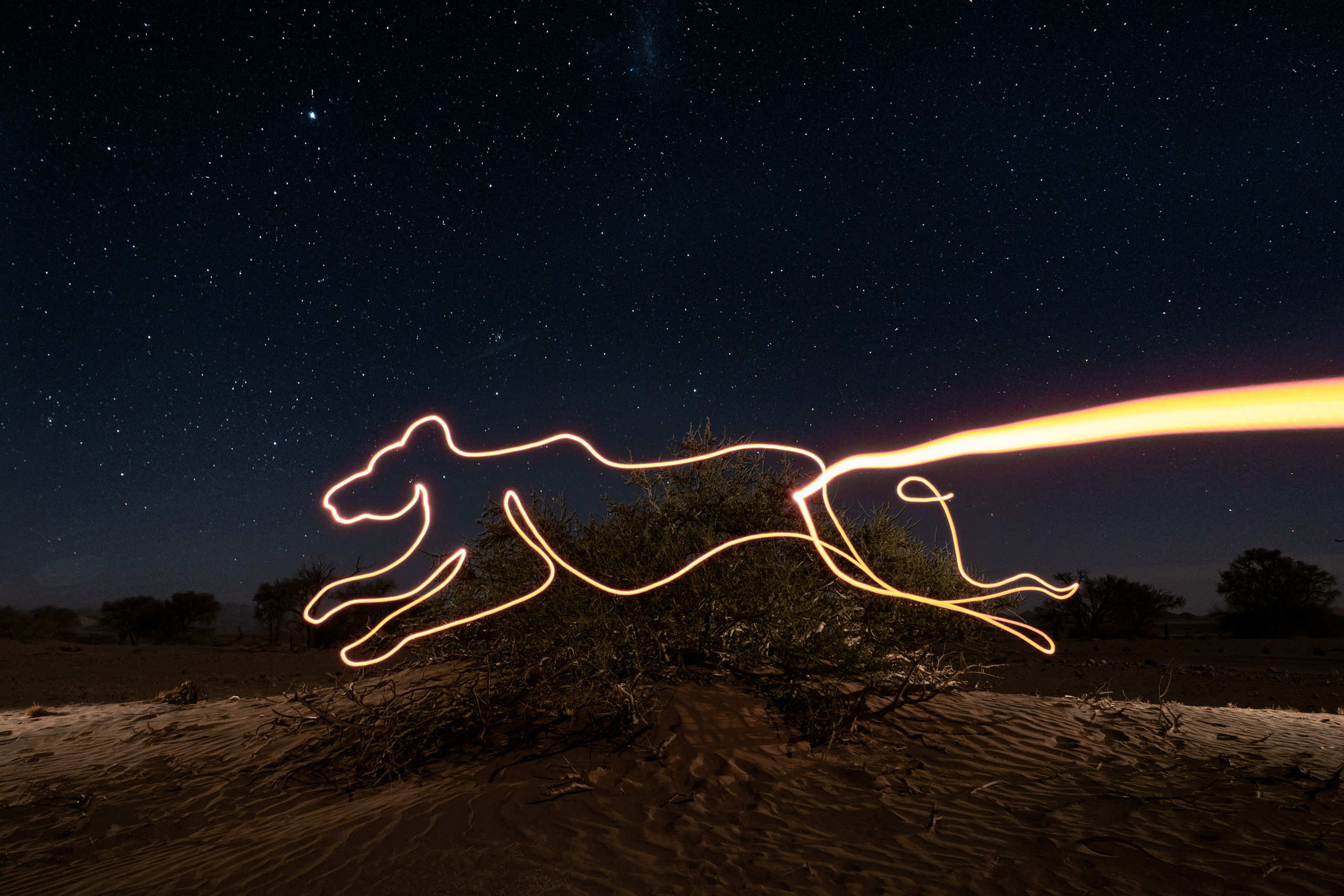 Als Lichtkünstler versuche ich stets, meine Arbeiten in die Umgebung zu integrieren, in der ich etwas kreiere. Auf dieser Reise enstanden alle meine Ideen für Lichtmalerei ziemlich schnell, da ich ein besseres Verständnis dafür bekam, wie wichtig es ist, alle Anstrengungen zur Wiederherstellung und zum Schutz der Wildnis zu unterstützen. Die gesamte Reise war äußerst inspirierend. Ich war fasziniert davon, die Wildtiere aus nächster Nähe zu beobachten und den Erklärungen der Guides zu lauschen, wie das Ökosystem der Wüste funktioniert und welche Geschichte jede Region hat.