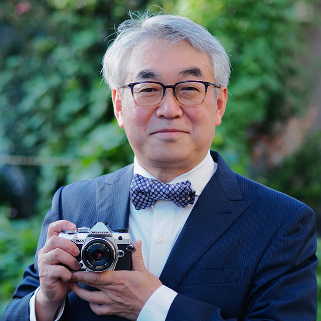 Er wurde 1968 in der Stadt Izumi in der Präfektur Kagoshima geboren. Nachdem er seinen Abschluss an der Nihon University College of Arts gemacht hatte, war er in einem Studio für Werbeaufnahmen tätig, bevor er sich selbstständig machte. Er hat hauptsächlich für Magazine und im Bereich der Werbefotografie gearbeitet. Im Jahr 1999 begann er im PR-Bereich für Olympus (heute OM Digital Solutions) Kameras und hat seitdem für Kataloge und Werbeanzeigen fotografiert. Auf der Suche nach neuen Motiven ist er in mehr als 50 Länder gereist. Die Esskultur in Japan hat er zu seinem Lebenswerk gemacht.