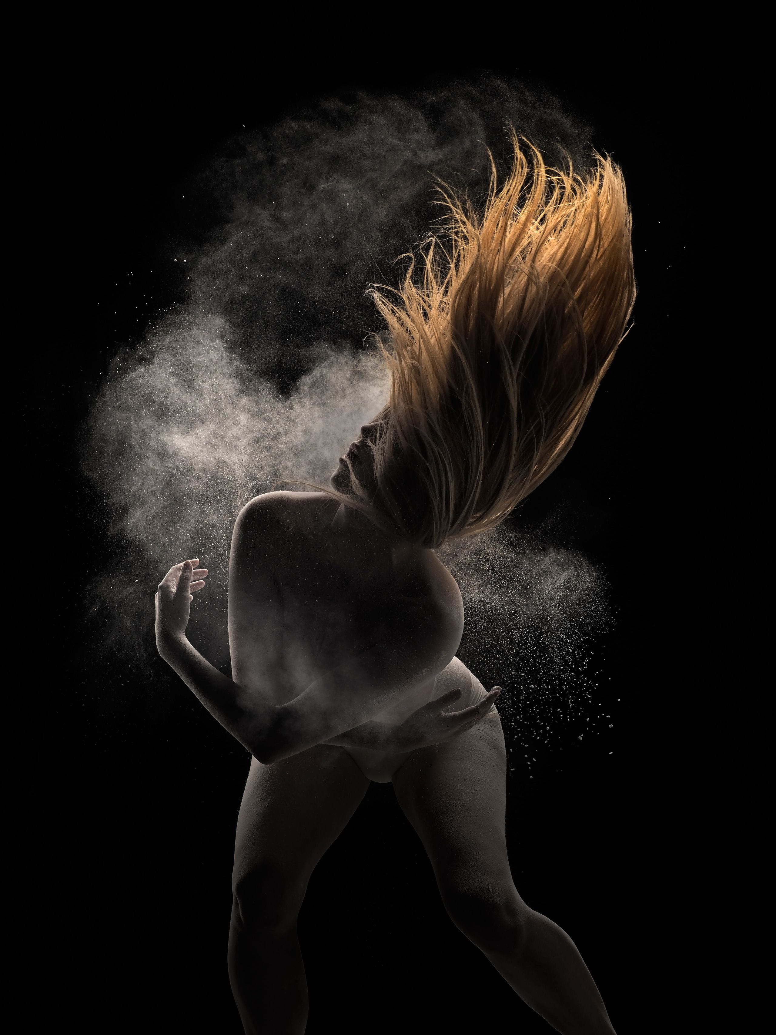 Als Gegensatz zum Outback wollten wir dann eine gewagte Grafikserie im Studio aufnehmen. Für die Fotos engagierten wir eine Gruppe von verschiedenen lokalen zeitgenössischen Tänzerinnen und Tänzern. Unter Verwendung von weißem Pulver und kurzen Blitzzeiten setzten wir auf die High-Speed-Serienaufnahmen der Kamera sowie auf eine außergewöhnlich saubere und präzise Bildqualität. Mit der OM-D E-M1 Mark II, unterstützt durch Olympus Capture, war ein reibungsloser und fehlerfreier Ablauf möglich.